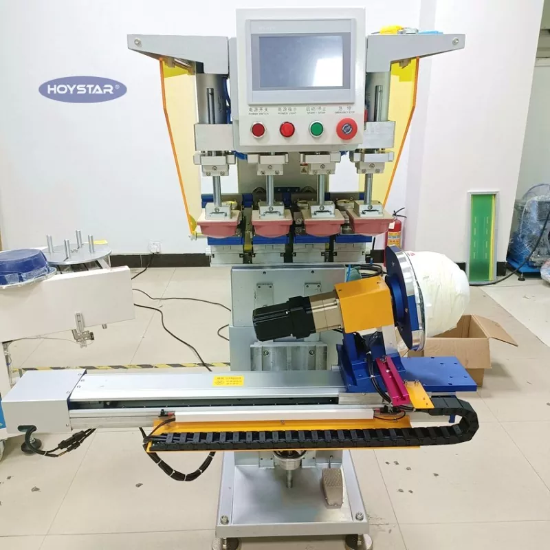 Beli Mesin Cetak Pad 4 Warna yang disesuaikan untuk Topi keledar daripada Dongguan Hoystar Machinery Co., Ltd., yang merupakan salah satu pengeluar dan pembekal di China. Mesin Cetak Pad Warna HOYSTAR 4 Untuk Helmet ini dilengkapi dengan panel kawalan skrin sentuh PLC yang mudah dikendalikan. Mesin ini mempunyai kawalan motor servo untuk pencetakan berputar automatik, menawarkan pilihan untuk mencetak pada 1 sisi, 2 sisi atau 4 sisi topi keledar. Meja kerja digerakkan ke kiri/kanan, malaikat berputar, ketinggian produk boleh dilaraskan. Setiap kepala pencetak boleh dilaras secara bebas dan boleh disediakan secara berasingan.