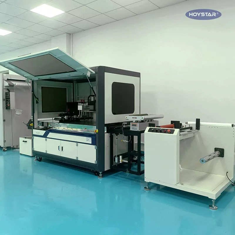 HOYSTAR ini membekalkan Mesin Cetak Skrin Roll To Roll Filem. Mesin dilengkapi dengan pendaftaran fotoelektrik, kawalan skrin sentuh PLC, tetapan boleh disesuaikan, sesuai untuk mencetak pada pelbagai filem, pita, dan lain-lain.