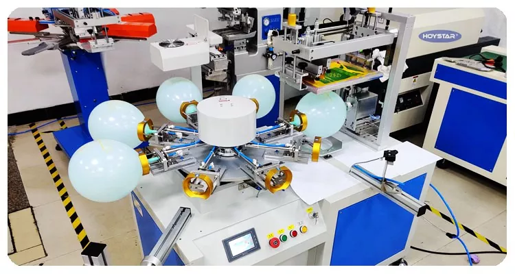 Sebagai pengilang profesional di China, kami ingin memberikan anda Mesin Cetak Skrin Belon 1 Warna Automatik HOYSTAR yang berkecekapan tinggi. Mesin kami menggunakan PLC dan kawalan skrin sentuh dan digunakan terutamanya untuk mencetak pelbagai jenis belon lateks. Mesin dilengkapi dengan pengumpan automatik, boleh memuatkan automatik, percetakan automatik, pengeringan automatik, pemunggahan automatik. Boleh mencetak pada 4 bahagian belon dan dilengkapi dengan ketuhar pengering boleh mengeringkan dakwat dengan baik.