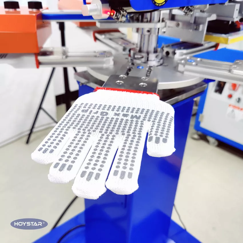 Sebagai pengilang profesional di China, kami ingin memberikan anda Mesin Cetak Skrin Sarung Tangan Tanpa Slip HOYSTAR yang pantas. Mesin kami menggunakan PLC dan kawalan skrin sentuh, dan digunakan terutamanya untuk mencetak pelbagai jenis sarung tangan. Mesin boleh mencetak pada sarung tangan kapas, sarung tangan rajutan, dan lain-lain. Mesin dilengkapi dengan ketuhar pengering yang boleh mengeringkan silikon dan dakwat dengan baik.