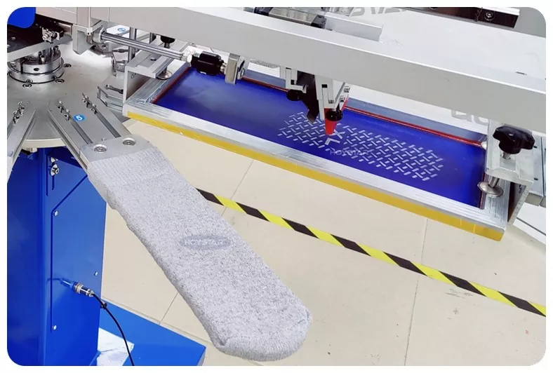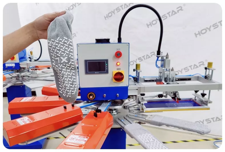 Mesin Cetak Skrin Tidak Licin untuk Stokin kami direka bentuk untuk stokin tidak licin berkualiti tinggi seperti stokin bayi, stokin haiwan peliharaan, stokin dewasa, stokin bola sepak, stokin cengkaman. Sesuai untuk pengeluar yang pakar dalam stoking sukan, perubatan, kanak-kanak dan yoga untuk dibeli untuk dicetak.