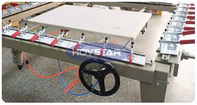 Mesin boleh mengecut atau mengembangkan saiz rak pengusung skrin mengikut saiz kain skrin dan bingkai skrin. Ia sangat mudah untuk membuat kedudukan.